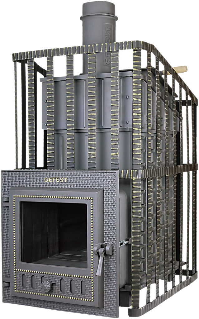 Одно из преимуществ печей «ГЕФЕСТ Ураган» — возможность модернизации за счет установки каменной облицовки, которая существенно упрощает создание режима «Русская баня». Замена сетки на облицовку проводится крайне быстро, без демонтажа печи и дымоходной системы. В основе «ГЕФЕСТ Ураган» — печь «ГЕФЕСТ Классика» с уникальной каменкой трапецеидальной формы. Особая форма позволяет в кратчайшее время нагреть заряд свыше 500 ⁰С — только с такой температурой получается легкий мелкодисперсный пар, что крайне важно для создания в парной режима «Русская баня». Конвекционные ребра на боковых стенках увеличивают теплопередачу от горящих дров к воздуху в парном помещении. Благодаря этому печь, несмотря на значительную толщину и массу, быстро выводит парную в требуемый режим. Чугунные банные печи ГЕФЕСТ — это 2-камерные топочные агрегаты, оборудованные системой дожига пиролизных газов, которая быстро нагревает каменку с зарядом или переводит печь в режим длительного горения. Регулируемая длина топочного тоннеля избавит от проблем при прохождении стены любой толщины. Дверцы печей ГЕФЕСТ оснащены жаростойкими стеклами фирмы SHOTT ROBAX (Германия) и керамическим жаростойким уплотнителем.
