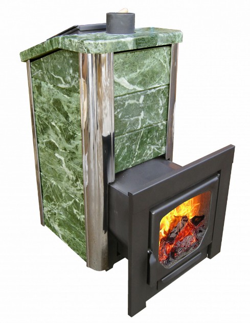 •    Закрытая каменка с наличием панорамного окна. Закрытость камянки позволяет нагреть камни до значительно больших температур, чем при открытом варианте.