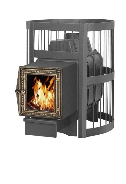 Банная чугунная печь Легенда Стандарт 28 (ДТ-4С) укомплектована чугунной не герметичной дверцей Везувий ДТ-4С с жаропрочным стеклом «SCHOTT ROBAX».  Конвекционно-вентилируемый кожух "Стандарт" изготовлен из металлического прутка диаметром 6мм покрашенной черной термостойкой краской.