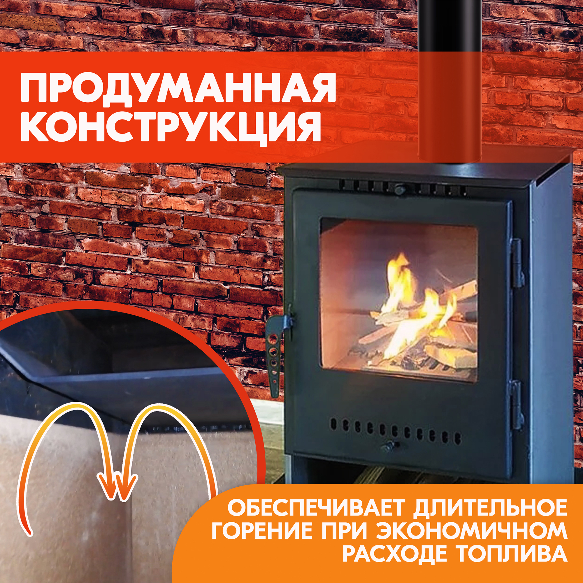 Конвекторы создают конвекционную тягу, что ускоряет нагрев помещения и снижает тепловую нагрузку на стенки топки, тем самым охлаждая ее.