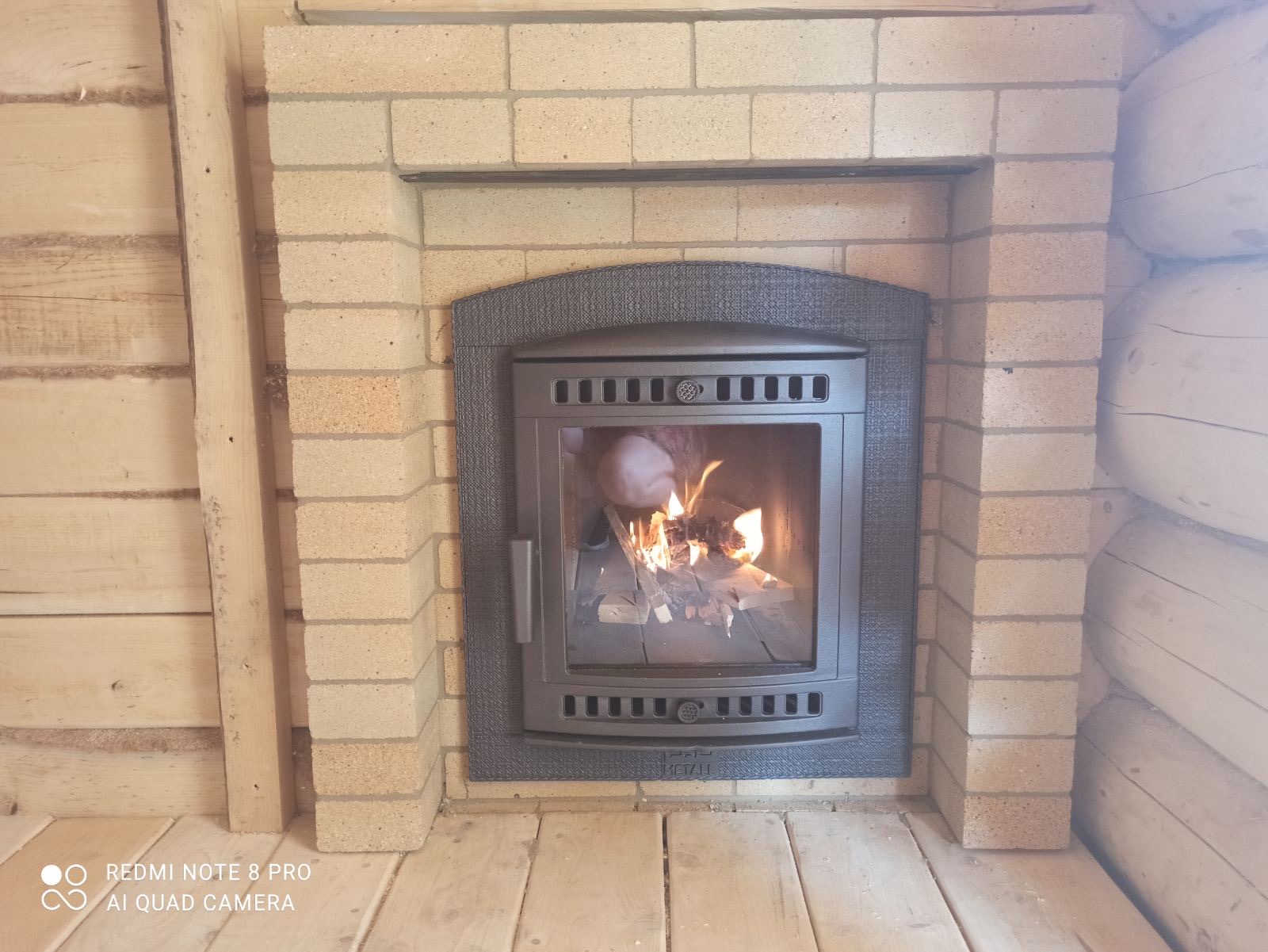 Монтаж печи Атмосфера с установкой дымохода,кладка портала со стороны комнаты отдыха.
